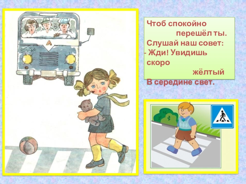 Чтоб спокойно        перешёл ты.Слушай наш совет: Жди! Увидишь скоро