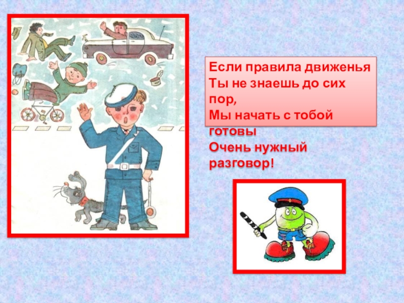 Если правила движеньяТы не знаешь до сих пор,Мы начать с тобой готовыОчень нужный разговор!