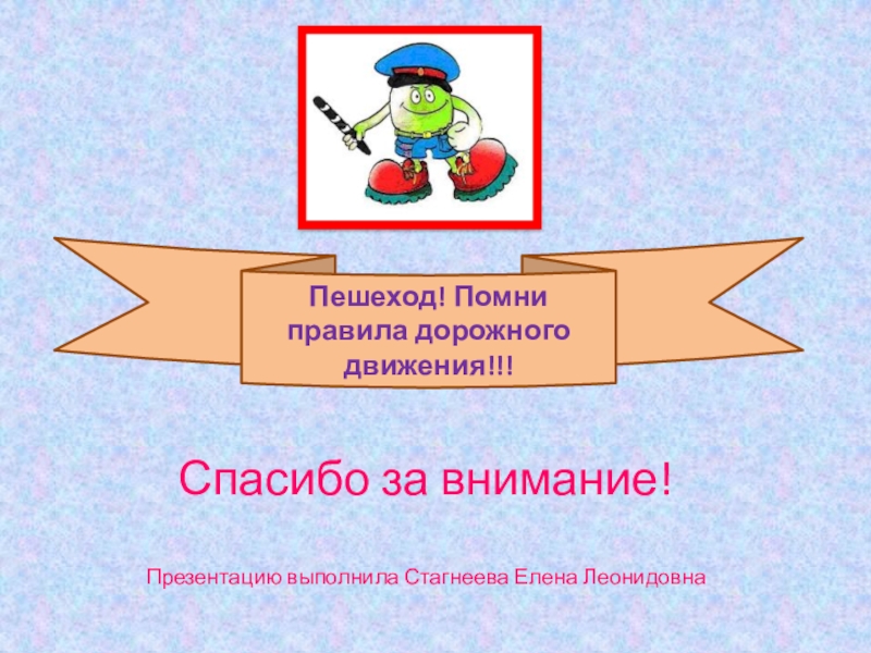 Спасибо за внимание!  Презентацию выполнила Стагнеева Елена ЛеонидовнаПешеход! Помни правила дорожного движения!!!