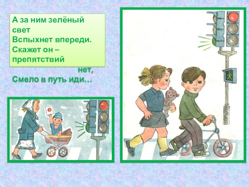 А за ним зелёный светВспыхнет впереди.Скажет он – препятствий