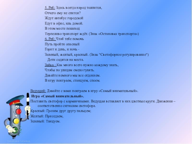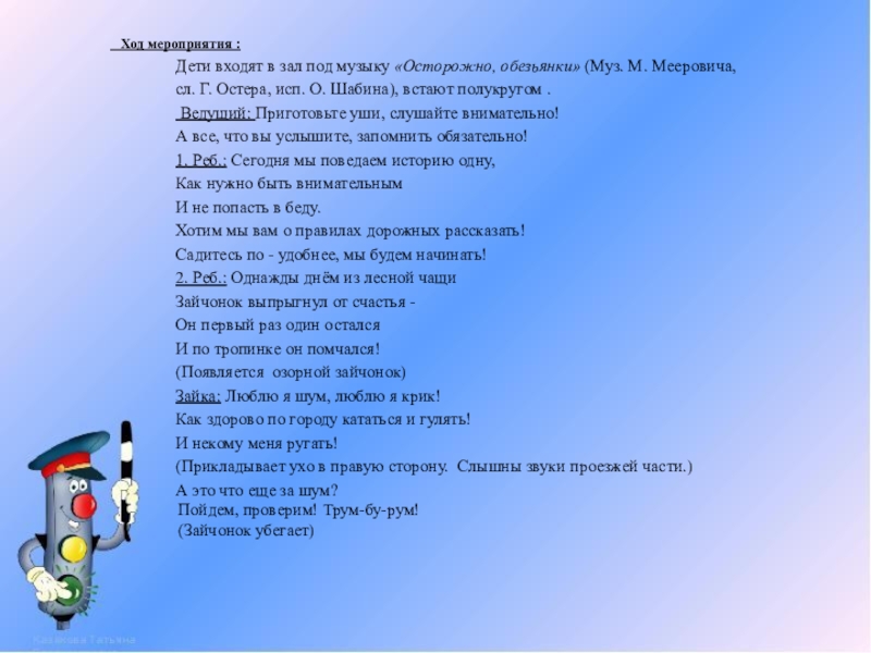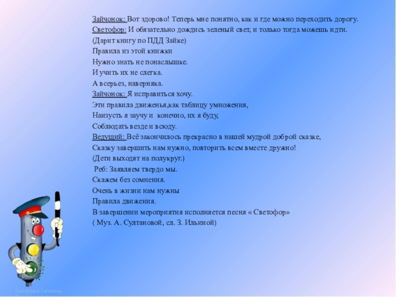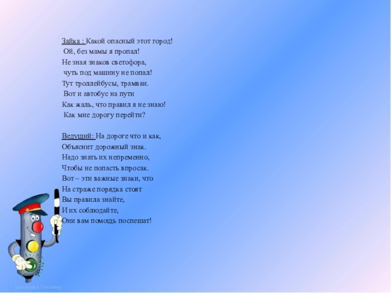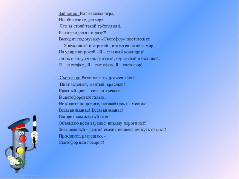 Слайд 10Зайчонок: Ты мой спаситель, Светофор!