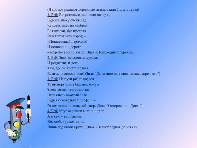 Светофор: И обязательно дождись зеленый свет, и только тогда можешь идти.