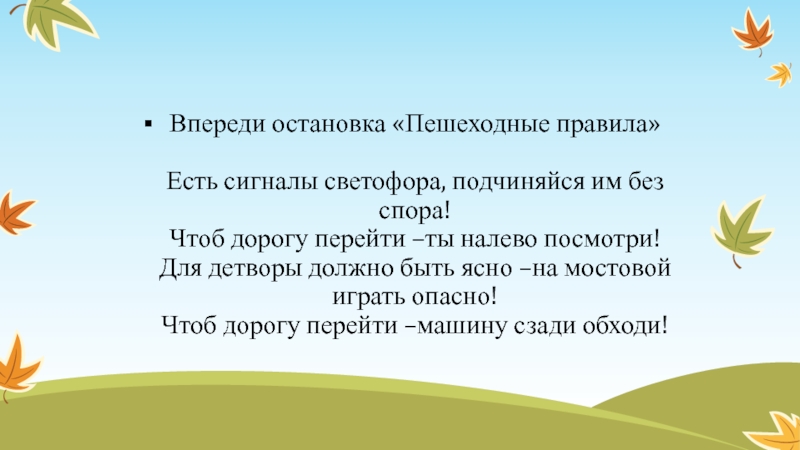 А зеленый свет горит-проходите говорит.