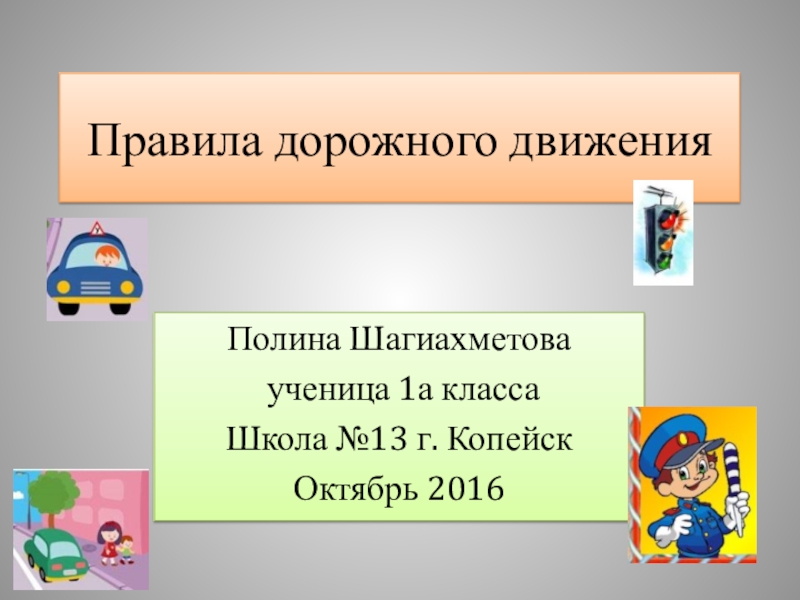 Правила дорожного движенияПолина Шагиахметова ученица 1а классаШкола №13 г. КопейскОктябрь 2016