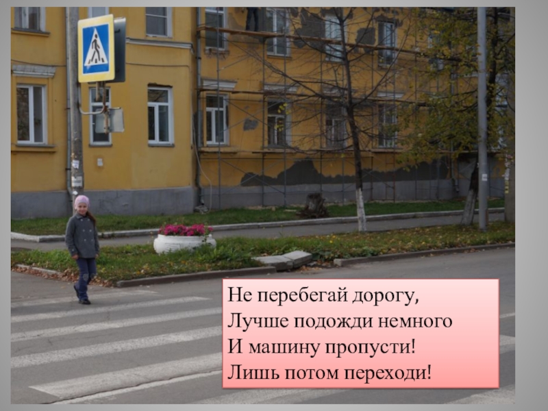 Не перебегай дорогу, Лучше подожди немного И машину пропусти! Лишь потом переходи!