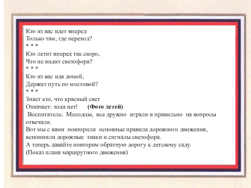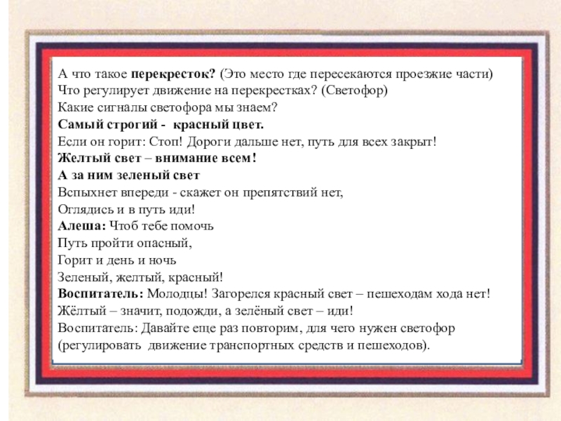 Воспитатель: Молодцы! Загорелся красный свет – пешеходам хода нет!