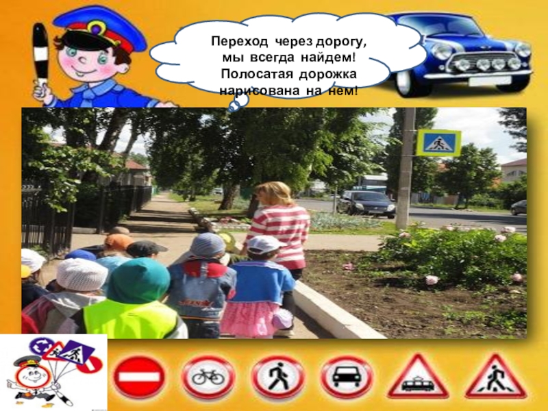 Слайд 13Переход через дорогу, мы всегда найдем! Полосатая дорожка нарисована на нем!