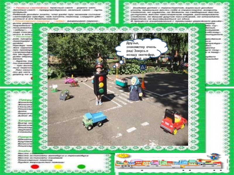 Слайд 3Друзья, знакомству очень рад! Зовусь я всюду светофор, я лучший друг