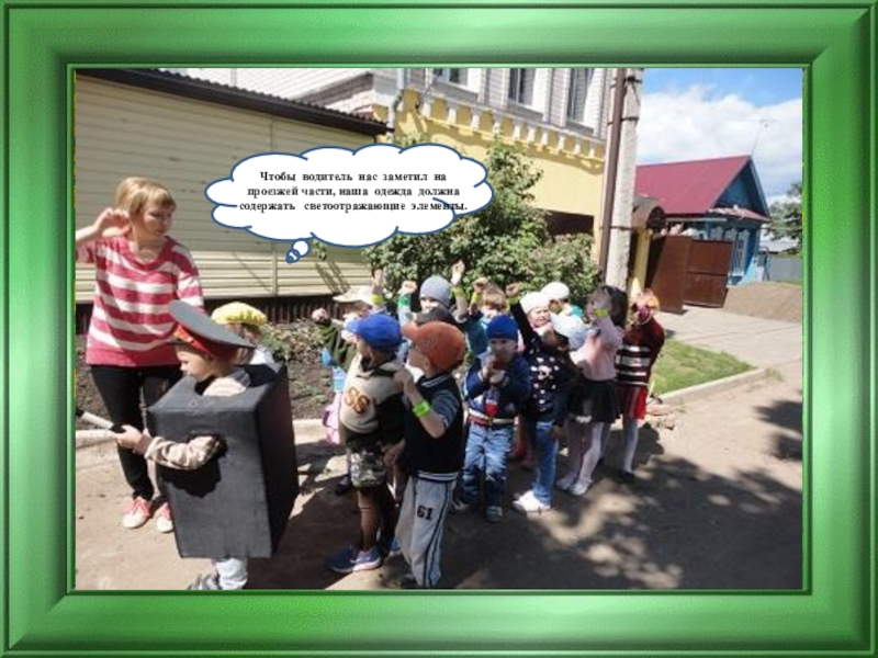 Слайд 11Чтобы водитель нас заметил на проезжей части, наша одежда должна