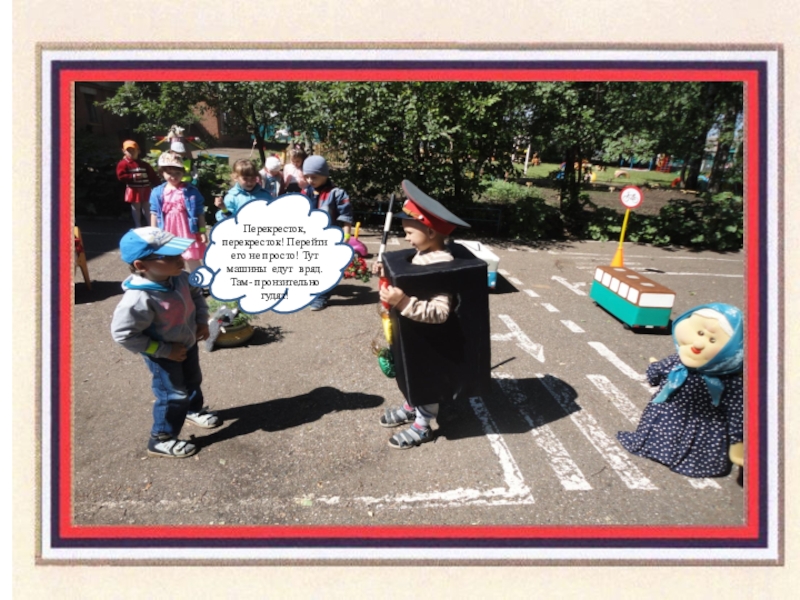 Слайд 5Перекресток, перекресток! Перейти его не просто! Тут машины едут вряд. Там-