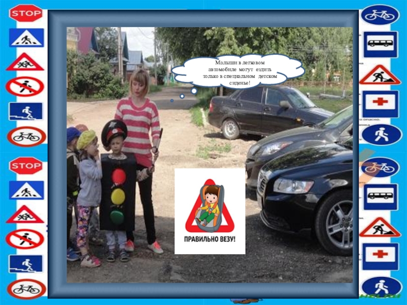 Слайд 12Малыши в легковом автомобиле могут ездить только в специальном детском сиденье!