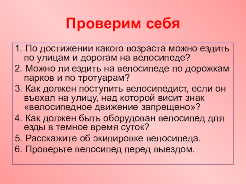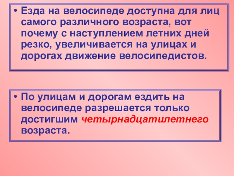 По улицам и дорогам ездить на велосипеде разрешается только достигшим четырнадцатилетнего возраста.