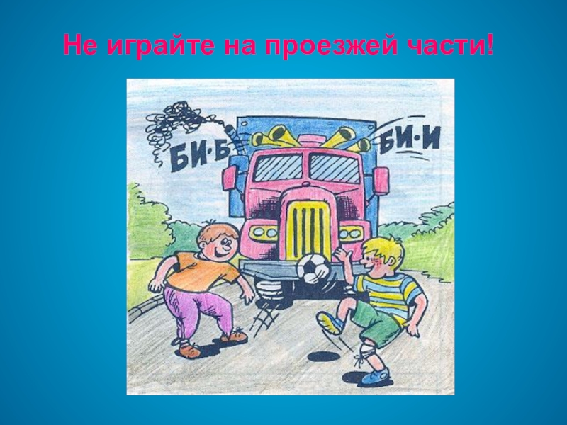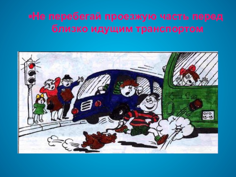 Слайд 12Не перебегай проезжую часть перед близко идущим транспортом