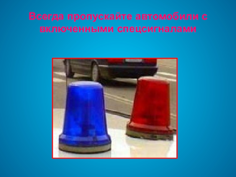 Слайд 6Всегда пропускайте автомобили с включенными спецсигналами