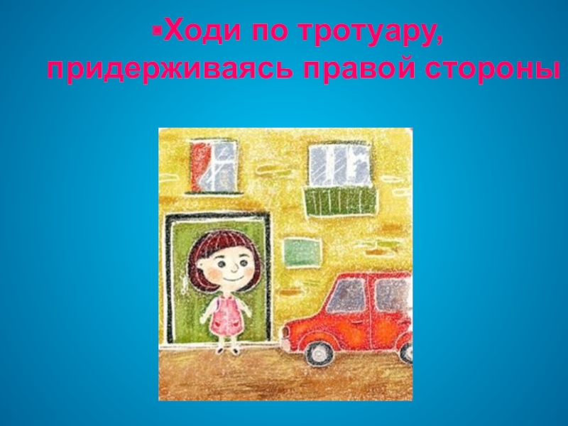 Слайд 2Ходи по тротуару, придерживаясь правой стороны