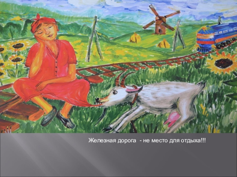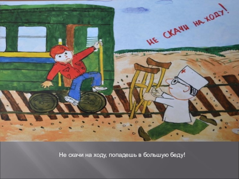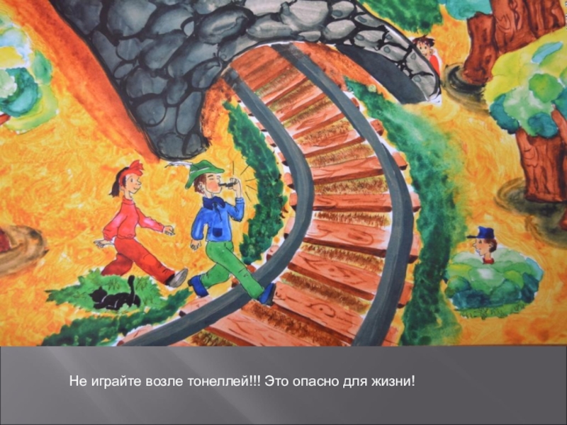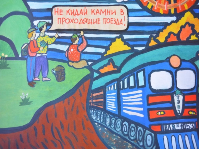НЕЛЬЗЯ БРОСАТЬ КАМНИ В ПРОХОДЯЩИЕ ПОЕЗДА!Это может привести к травматизму пассажиров и создать аварийную ситуацию на железной