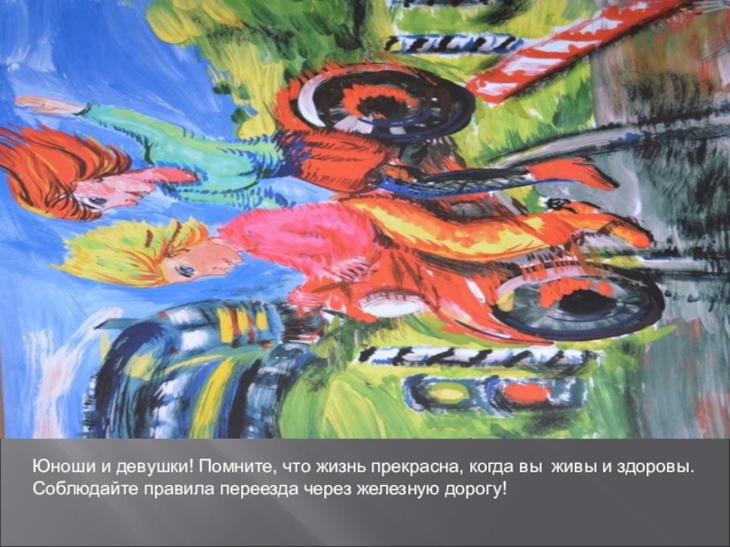 Юноши и девушки! Помните, что жизнь прекрасна, когда вы живы и здоровы.Соблюдайте правила переезда через железную дорогу!