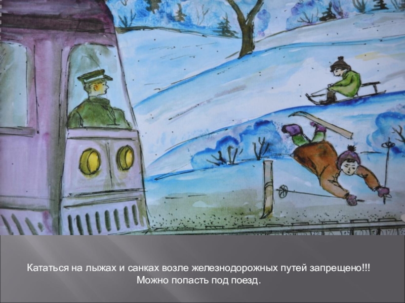 Кататься на лыжах и санках возле железнодорожных путей запрещено!!! Можно попасть под поезд.
