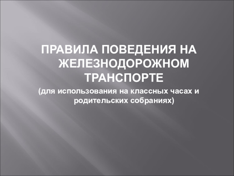 ПРАВИЛА ПОВЕДЕНИЯ НА ЖЕЛЕЗНОДОРОЖНОМ ТРАНСПОРТЕ(для использования на классных часах и родительских собраниях)