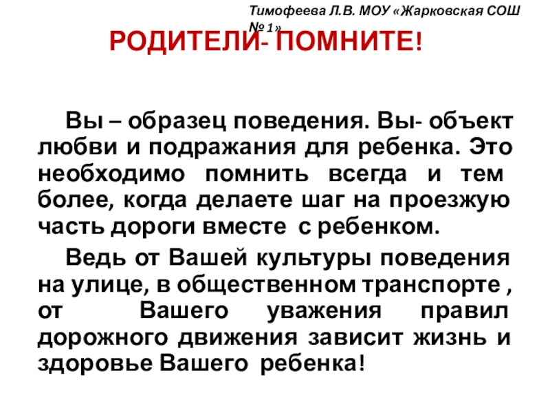 Тимофеева Л.В. МОУ «Жарковская СОШ № 1»