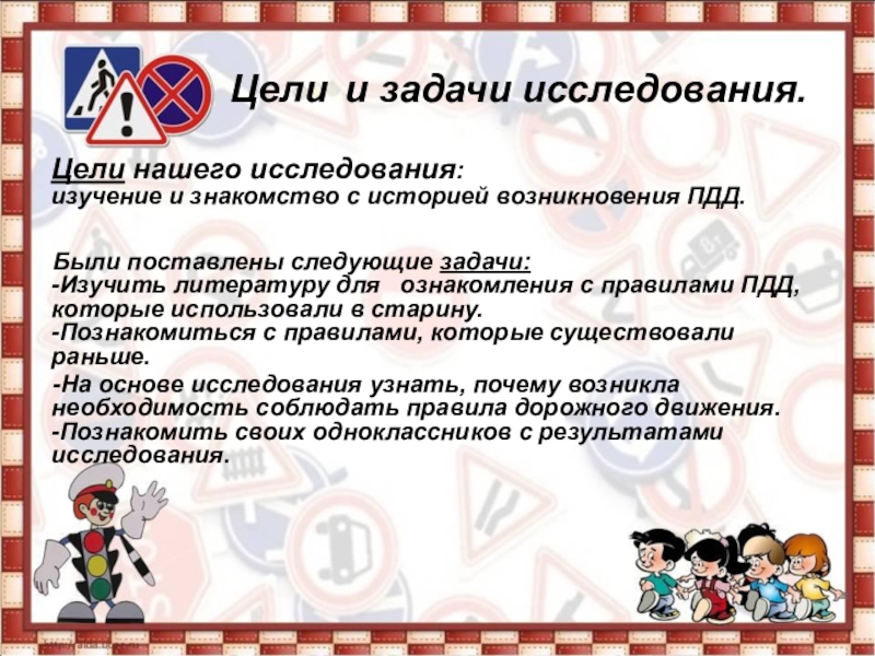 -На основе исследования узнать, почему возникла необходимость соблюдать правила дорожного движения.