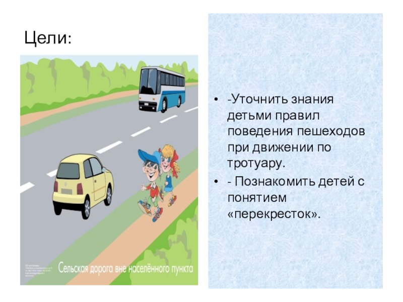 -Уточнить знания детьми правил поведения пешеходов при движении по тротуару.