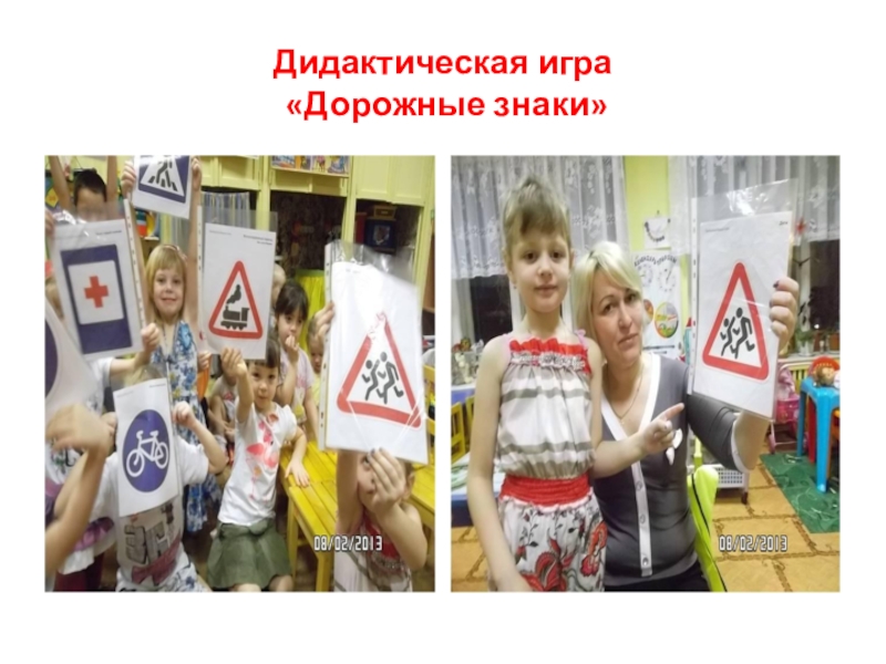 3. Дидактическая игра «Дорожные знаки». Цель: Закрепить знания о правилах поведения на улице. Вспомнить дорожные знаки «Пешеходный переход», «Будь осторожен».