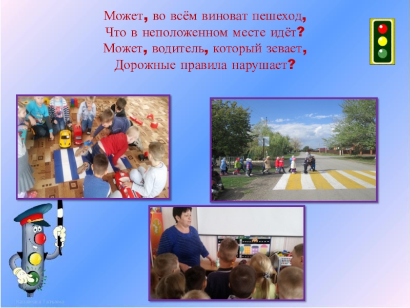 Может, во всём виноват пешеход, Что в неположенном месте идёт? Может, водитель, который зевает, Дорожные правила нарушает?