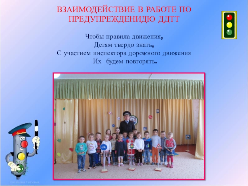 Слайд 19ВЗАИМОДЕЙСТВИЕ В РАБОТЕ ПО ПРЕДУПРЕЖДЕНИДЮ ДДТТ Чтобы правила движения, Детям твердо знать, С участием