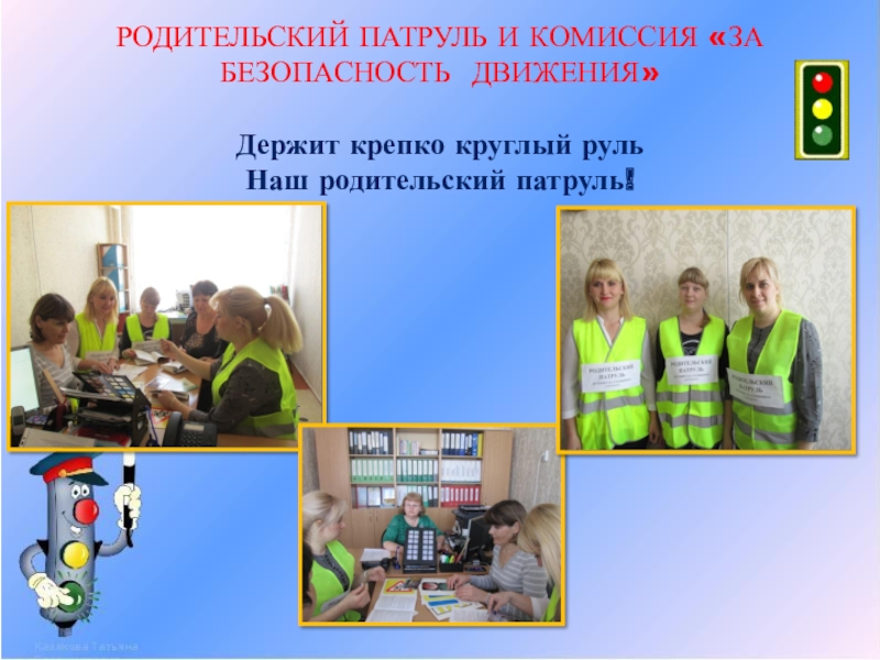 РОДИТЕЛЬСКИЙ ПАТРУЛЬ И КОМИССИЯ «ЗА БЕЗОПАСНОСТЬ ДВИЖЕНИЯ»   Держит крепко круглый руль Наш родительский