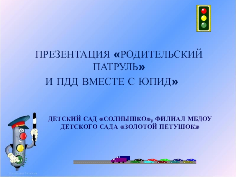 ДЕТСКИЙ САД «СОЛНЫШКО», ФИЛИАЛ МБДОУ ДЕТСКОГО САДА «ЗОЛОТОЙ ПЕТУШОК»ПРЕЗЕНТАЦИЯ «РОДИТЕЛЬСКИЙ ПАТРУЛЬ» И ПДД ВМЕСТЕ С ЮПИД»