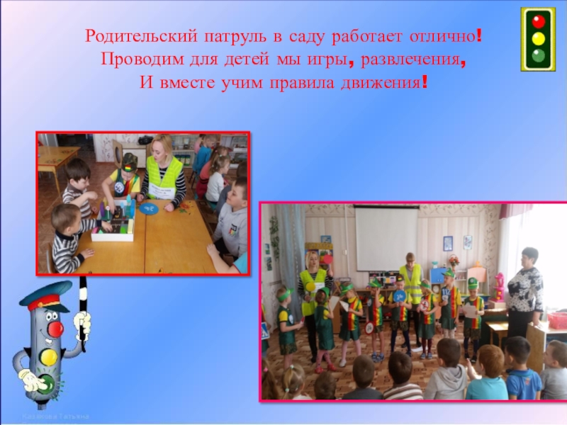 Слайд 18 Родительский патруль в саду работает отлично! Проводим для детей мы игры, развлечения,