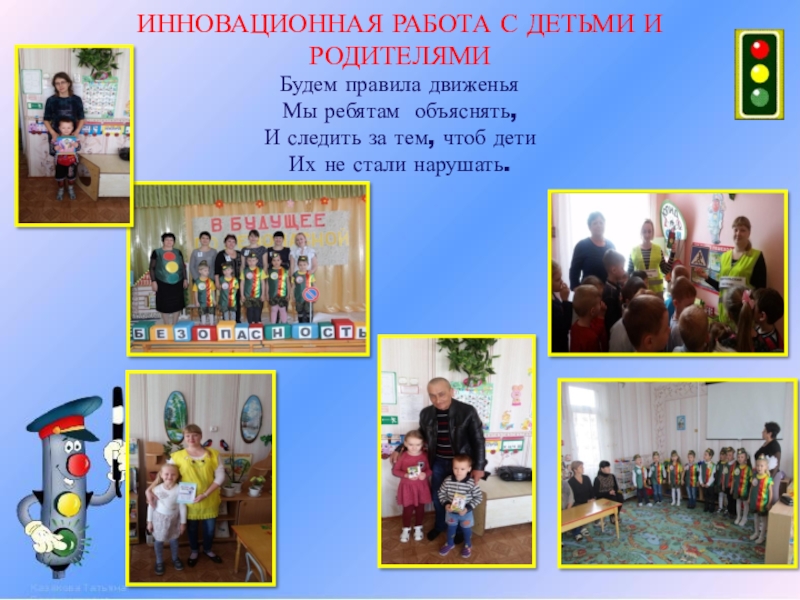 ИННОВАЦИОННАЯ РАБОТА С ДЕТЬМИ И РОДИТЕЛЯМИ Будем правила движенья Мы ребятам объяснять, И следить за тем, чтоб