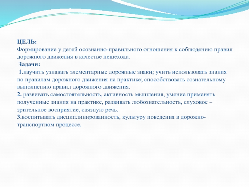 3.воспитывать дисциплинированность, культуру поведения в дорожно-транспортном процессе.