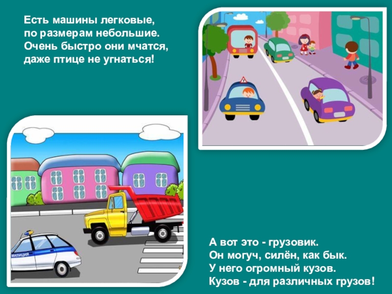 Слайд 5Есть машины легковые,