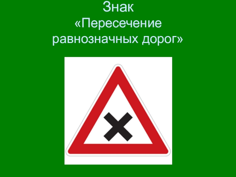 Слайд 5Знак «Пересечение равнозначных дорог»