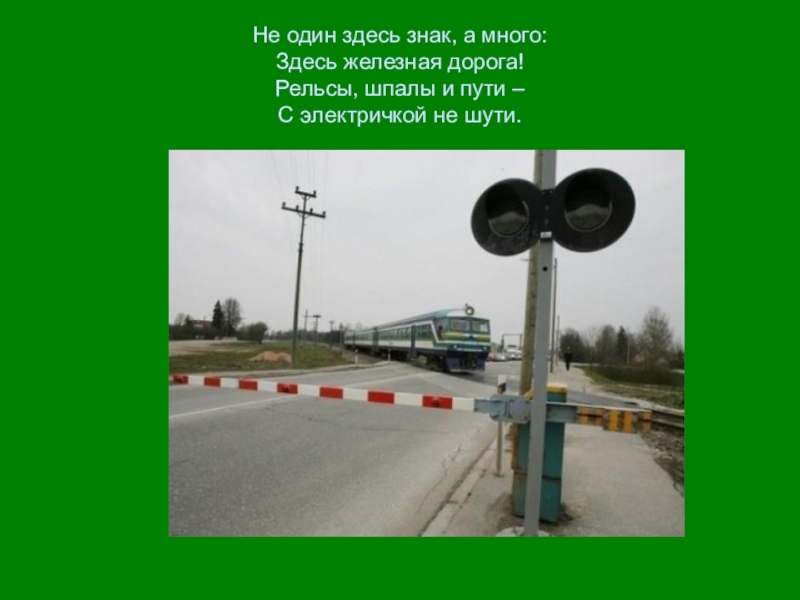 Не один здесь знак, а много: Здесь железная дорога! Рельсы, шпалы и пути – С электричкой не