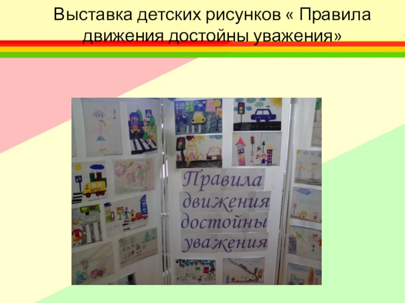 Слайд 15Выставка детских рисунков « Правила движения достойны уважения»