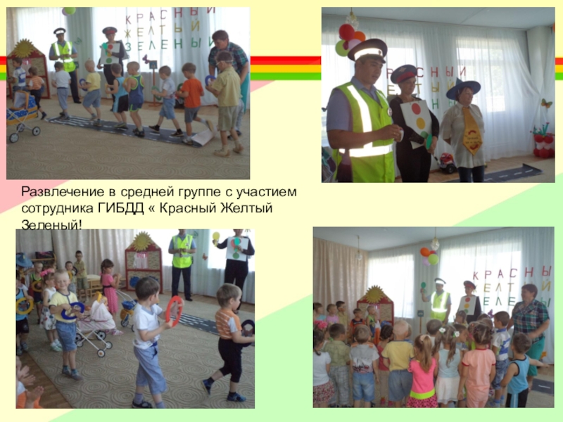 Слайд 2Развлечение в средней группе с участием сотрудника ГИБДД « Красный Желтый
