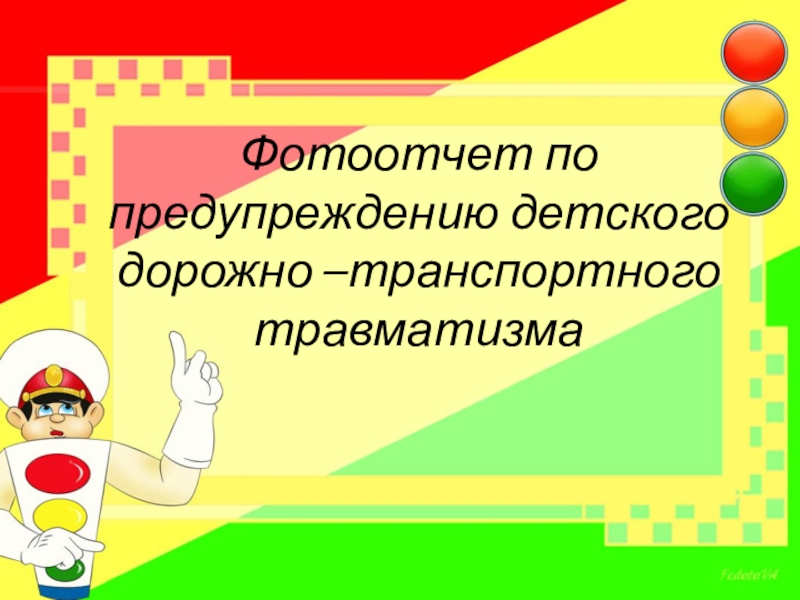 Слайд 1 Фотоотчет по предупреждению детского дорожно –транспортного травматизма