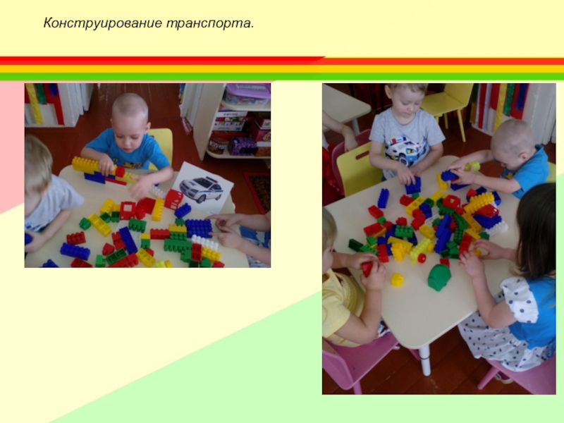 Слайд 13Конструирование транспорта.