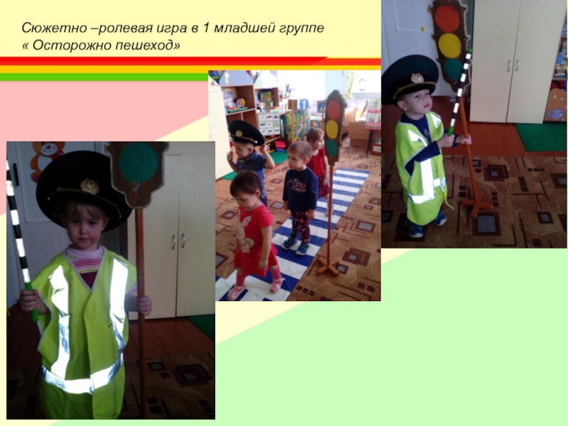 Слайд 6Сюжетно –ролевая игра в 1 младшей группе « Осторожно пешеход»