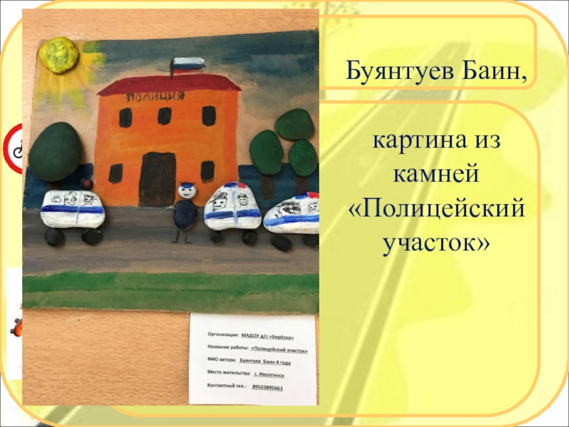 Слайд 15Буянтуев Баин, картина из камней «Полицейский участок»