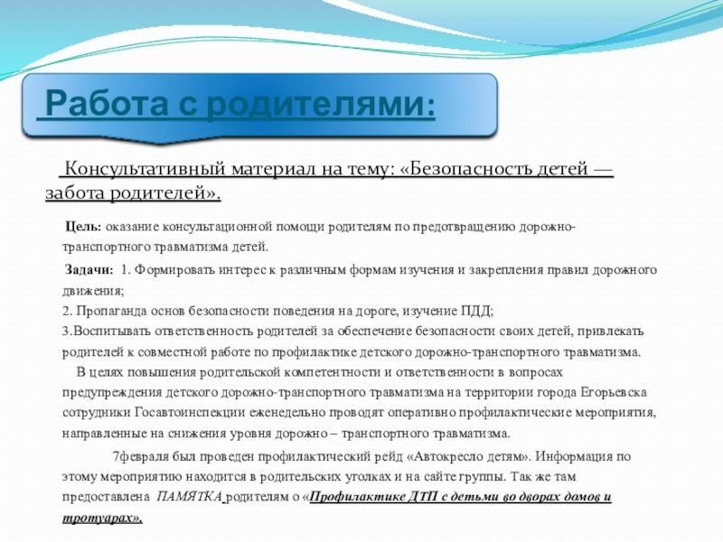 Консультативный материал на тему: «Безопасность детей — забота родителей».