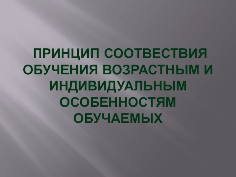 Слайд 11 ПРИНЦИП СООТВЕСТВИЯ ОБУЧЕНИЯ ВОЗРАСТНЫМ И ИНДИВИДУАЛЬНЫМ ОСОБЕННОСТЯМ ОБУЧАЕМЫХ