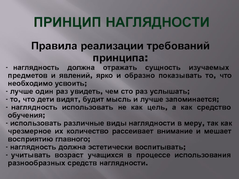 наглядность использовать не как цель, а как средство обучения;