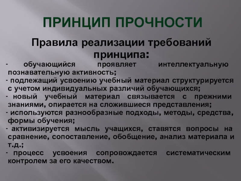 Слайд 8 ПРИНЦИП ПРОЧНОСТИ