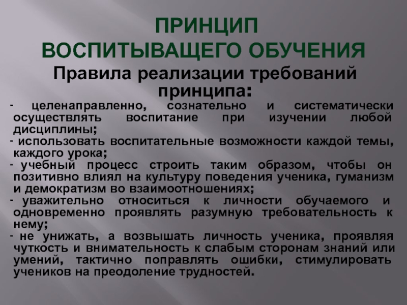 Слайд 2ПРИНЦИПЫ ОБУЧЕНИЯ (дидактические принципы) –