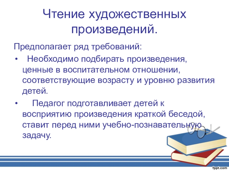 Необходимо подбирать произведения, ценные в воспитательном отношении, соответствующие