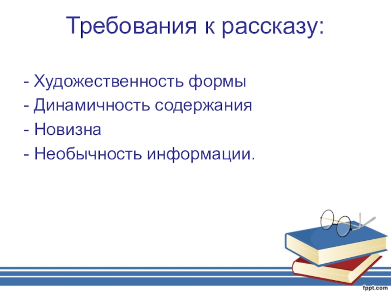 В рассказе знания разного содержания передаются в образной форме. В качестве материала для рассказов используются литературные произведения (рассказы К.Д.Ушинского, Л.Н.Толстого, В.В.Бианки, В.А.Осеевой и др.), рассказы педагога из личного опыта.